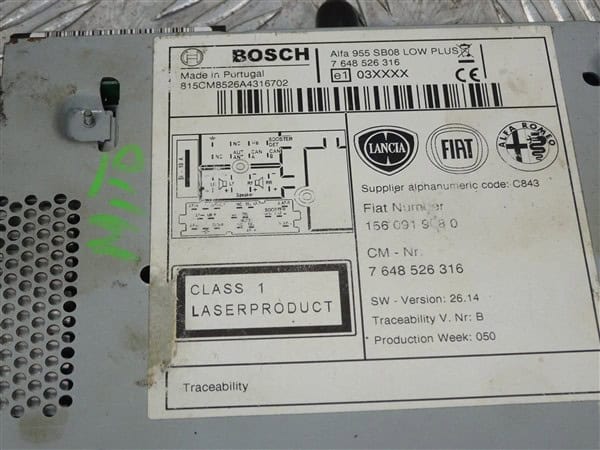 Stereo Radio CD Player 156091908 – Alfa Romeo Mito 2008-2020